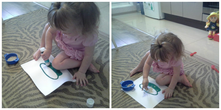 «Накладываем» в тарелку (аппликация «клей-крупа»)
