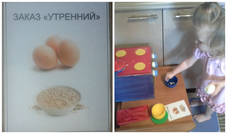А вот и первые посетители заглянули к нам на завтрак!!! И первый заказ для шеф-повара Ульяны - утренний - яички и каша.