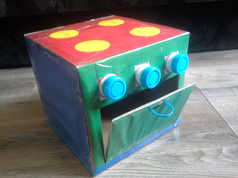 Так, посуда есть. А где ж готовить-то? Та-да-та-да!!!! А вот и плита!!! Делал папа!!! Мне совсем некогда было!!!