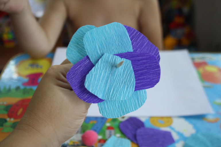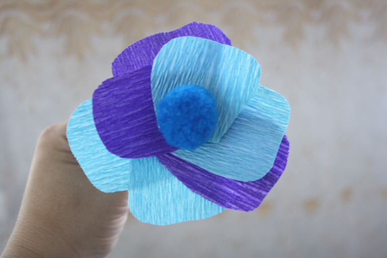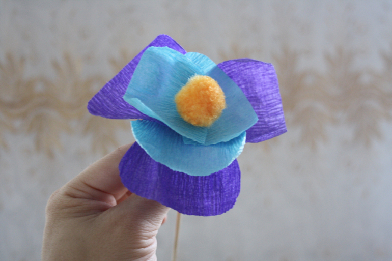 Можно оставить так, а можно немного расправить бумагу по краям лепестков и она немного загнется, как в настоящем цветке.