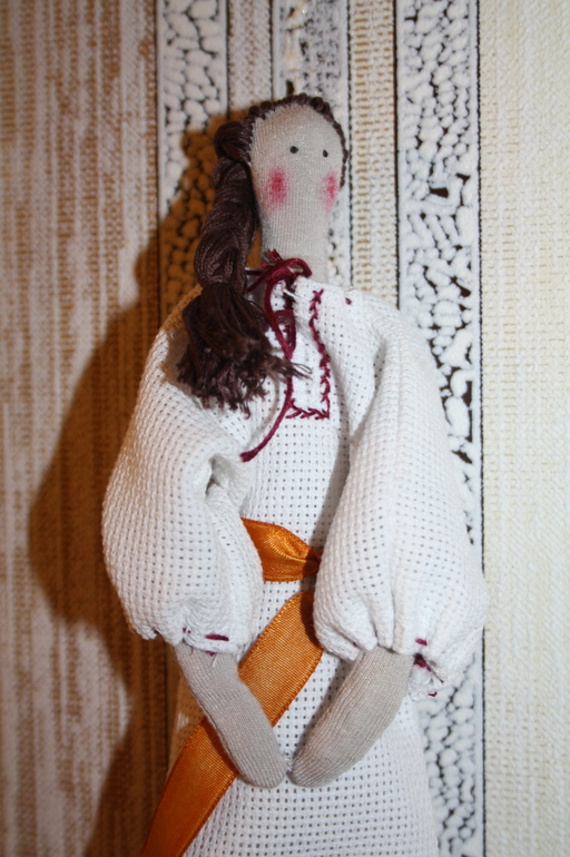 по просьбам родственников пошилась моя первая кукла тильда. буду еще одевать и дополнять, но хочется услышать первую критику