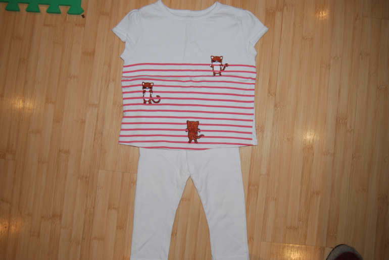 Добрый вечер..Только добралась до компа..Кидаю замеры.Костюм цветы:Кофточка дл-33,рукав-27,шир-29....брючки дл.-43,резинка 21 в раст-25..С кошечкой.Кофточка дл-35,рукав-26,шир-27...лосинки дл44,по рез.20 в раст-25,лонг дл33,рукав-26,шир по гр.25
