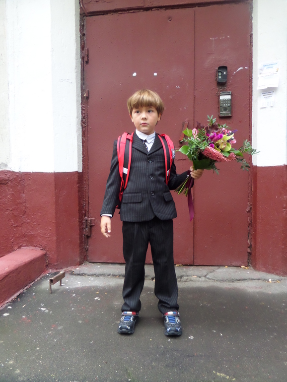 Во-первых поздравляю всех с праздником! А во-вторых хочу представить небольшой фотоотчет про наше 1 сентября. Димка собирался в школу охотно, обещал хорошо учиться, лучше папы (без скромности замечу, что в данном случае ему придется серьезно постараться). Ну в общем одели, вручили букет, нацепили рюкзак и пошли: