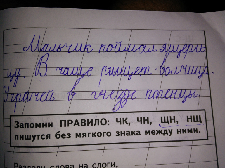 Жена дома ребенка развивает. В школе, естественно, до этого пока не дошли. Забавно, у ребенка уже есть свой почерк: