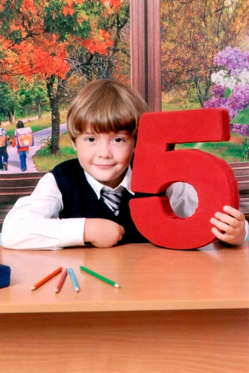 До этого уже были всяческие наклейки типа "молодец", "замечательно" и т.д. А эта первая "числовая" оценка. В школе на труде Димка сделал: