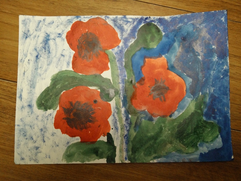 Сегодня в школе было ИЗО и Димкин рисунок признали лучшим в классе, все дети подошли смотреть, а учительница от удивления смогла только спросить: "Это ты сам нарисовал???". (Синей краски не хватило, но вроде так даже интереснее)
