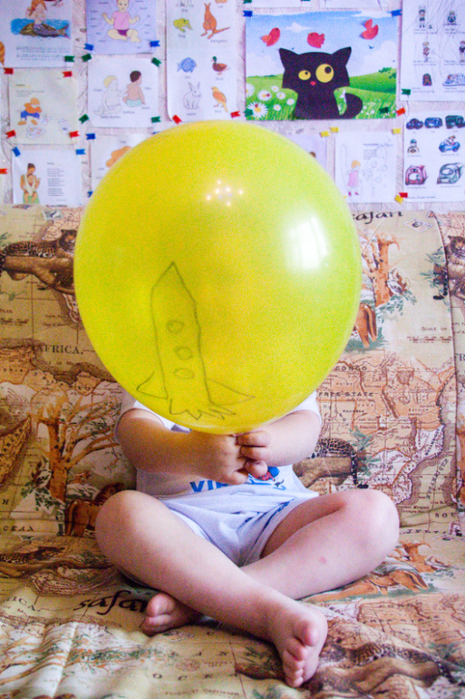 Потом мы устроили свой запуск. Ракета из картона была покрашена и отправлена на просушку. А мы запускали шарик. Сначала Лев отнесся к этой идее скептически, но потом его было не оторвать. Под конец у меня закружилась голова и я опять пообещала, что уж у папы то сил побольше и мы отложили очередной запуск на завтра.