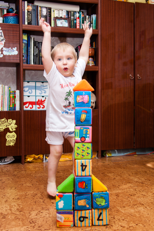 Ну и в завершение мы построили ракету из кубиков (Левка изображает взлет ракеты).
