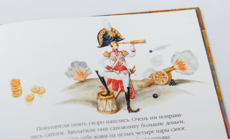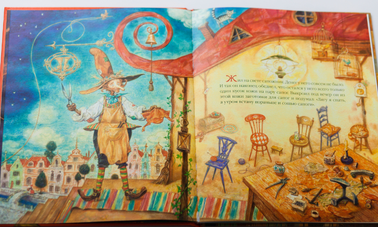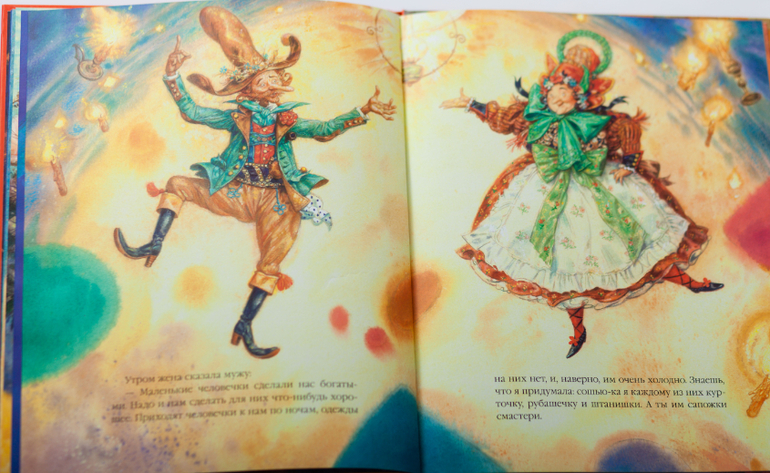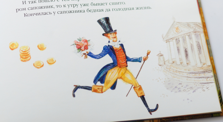 Эта книга уже давно поселилась у нас на полке. Но "выстрелила" именно в январе. Перечитали мы ее, наверное, раз двадцать, не меньше. Удивительно, что она не пошла раньше, поскольку Ломаева Лев очень любит. Красная шапочка от Ломаева долго-долго была у нас в любимчиках. Теперь пришел черед Маленьких человечков. Мне иллюстрации Ломаева немного "приелись", но надо отдать ему должное, каждая сказка в его исполнении приобретает неповторимое звучание. А мелкие детали можно разглядывать до бесконечности и каждый раз находить для себя что-то новое. Ну и издание Акварели из этой серии мне очень нравятся, большой формат, хорошая бумага, сочные рисунки. Сюжет, я думаю, всем известен. Бедный сапожник, чуть не остался без сапог. Но наскреб денег на кожу на одну пару, скроил и решил сшить утром. Проснулся утром и увидел готовые сапоги готовые, да ладные. Продал, купил кожи на две пары и далее получал сапоги в геометрической прогрессии. Однажды из любопытства он решил посмотреть на неведомых помощников. А потом им с женой пришла идея, как можно помощников отблагодарить за помощь и труд. Хорошая история с правильным кольцом.