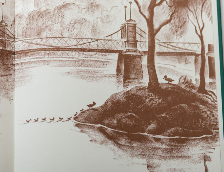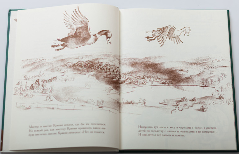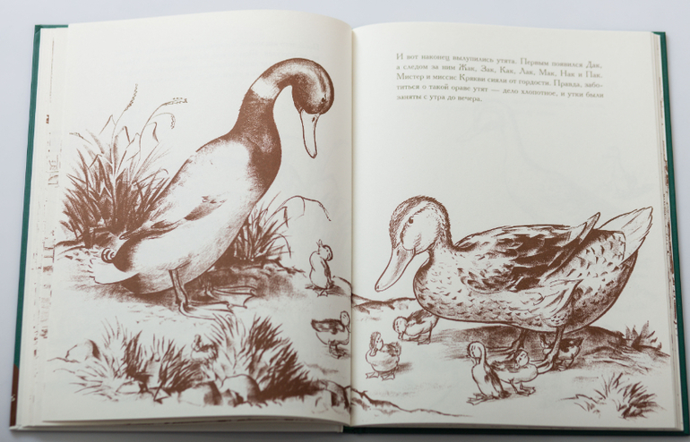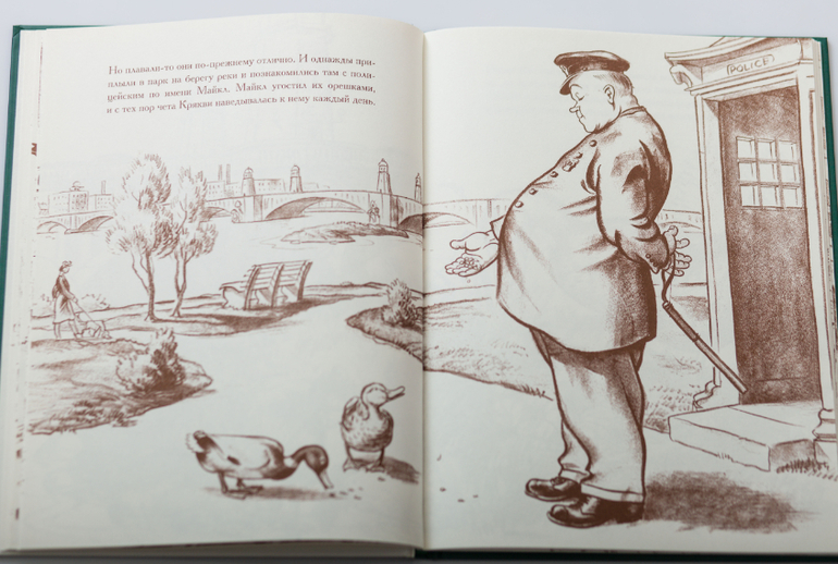 Книга эта повествует о жизни отдельно взятого утиного семейства. В общем-то незатейливая история сопровождается потрясающей красоты иллюстрациями. Я просто очарована тем, как автор нарисовал маленьких пушистых утят. А полицейский Майкл бьет все рекорды харизматичности. Неудивительно, что Роберт Макклоски получил за иллюстрации к этой книге премию Кальдекотта.