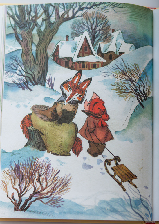 А вот та картинка, из-за которой я решилась на покупку. Меня просто пленил этот поросенок с саночками. Правда, до этой истории мы еще не дошли.