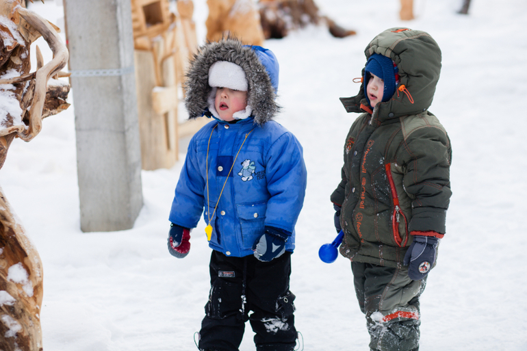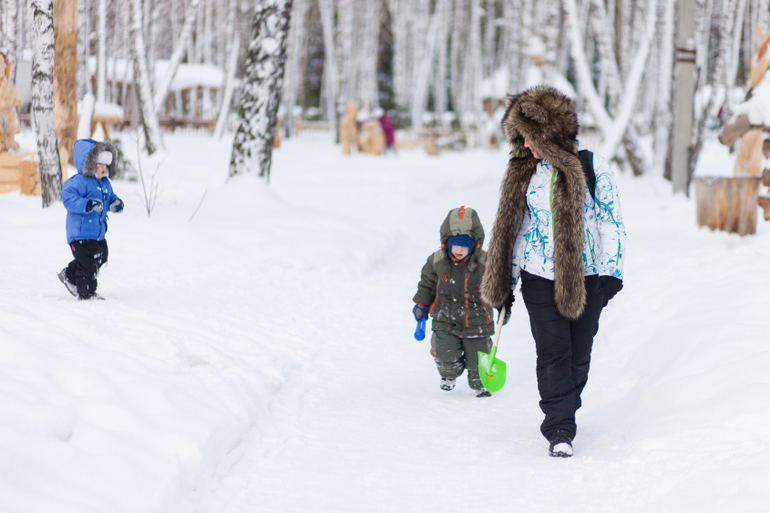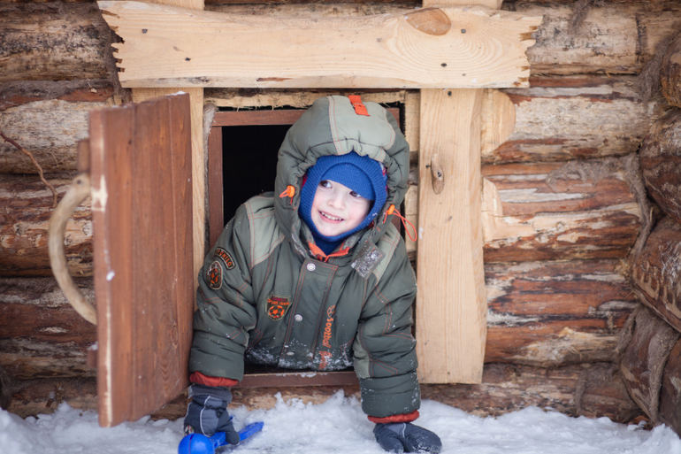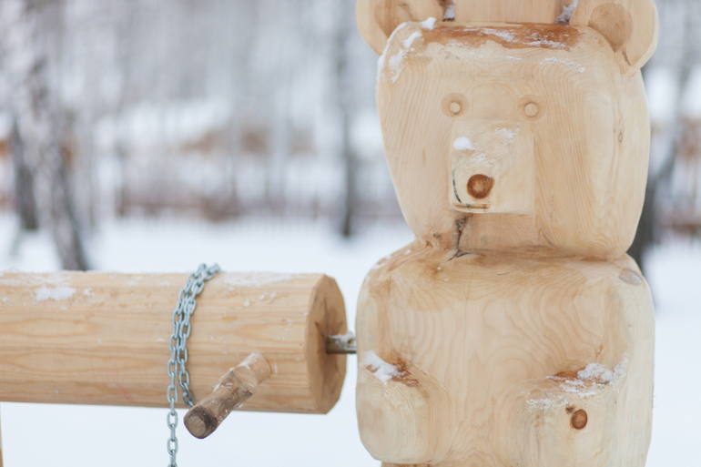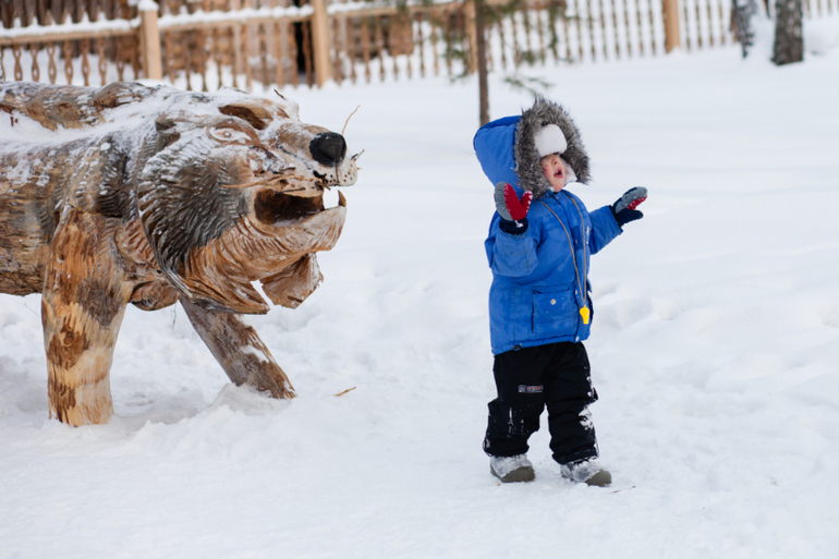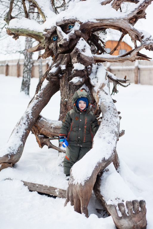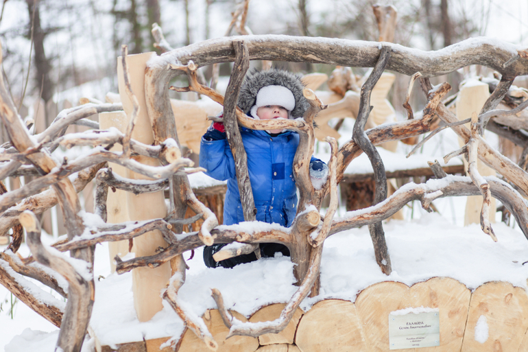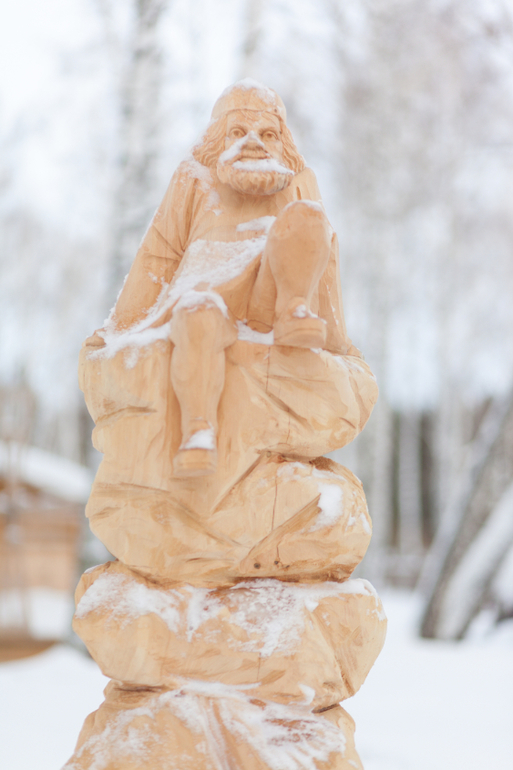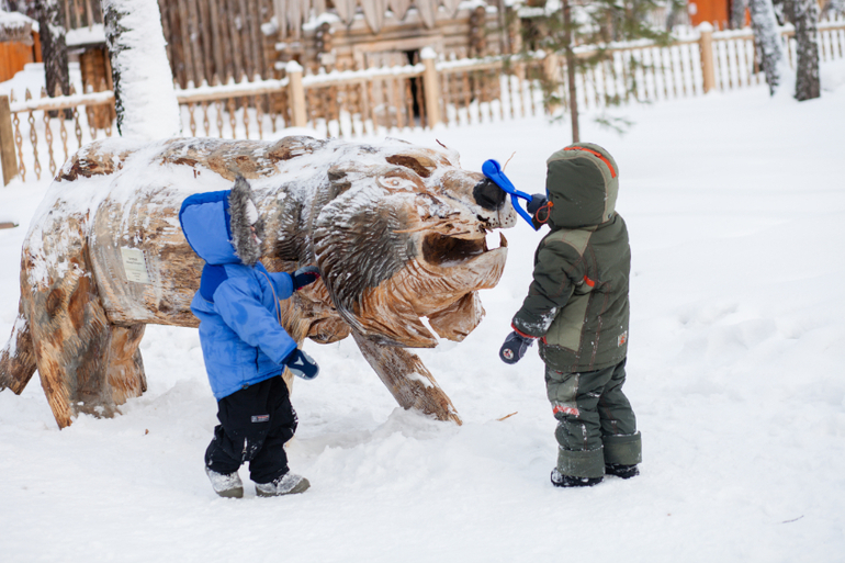 Это было на входе. Мальчишки радостно облазили все домишки, перекопали все сугробы. Еле-еле мы вытащили их оттуда, чтобы показать им "Деревню мастеров". Каждый год в Томске проходит фестиваль "Праздник топора". Итогом этих фестивалей и стала эта часть парка. Там есть на что полюбоваться! Мастера из разных городов и стран. Мы даже Британию приметили.