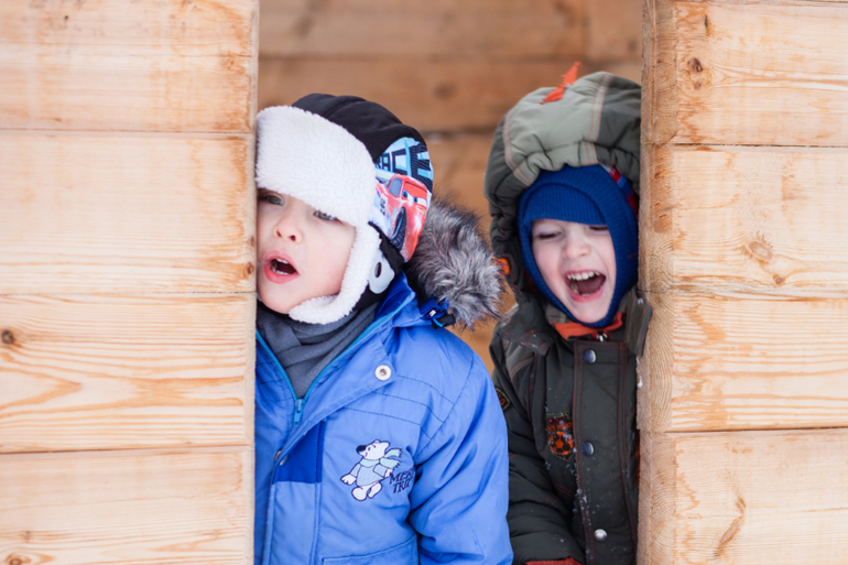 Для профилактики тигр заработал снежколепом по морде. А мальчики небольшую лекцию о том, что деревянных зверей воспитывать не стоит:) Тоже для профилактики.