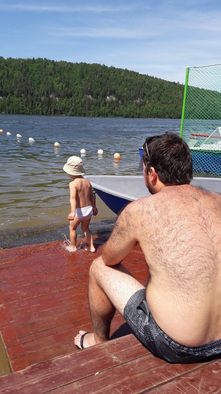 Еще ездили на озера в Челябинской области,реки в Башкирии, на Павловку, купались и купались. Я обычно побаиваюсь купаться в реках и озерах, но из за непроходимой жары мне ничего не оставалось как лезть в воду. Лева в начале лета побаивался и с осторожностью подходил к воде, к концу он уже заходил по горло и плескался и барахтался как лев в воде)