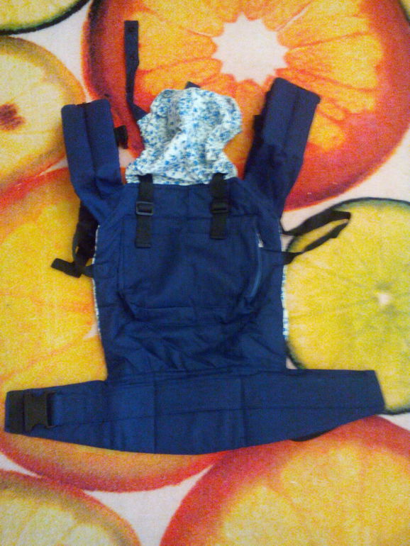 Очень удобный Эрго рюкзак, конечно же новый, ребенок сидит лицом к маме, есть капюшон на кнопочках и кармашек. Материал 100% хлопок.