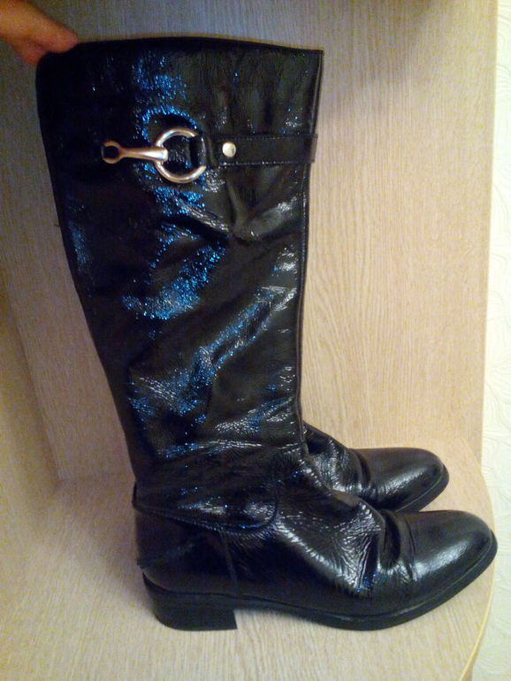 Отличные демисезонные сапоги, 39 размер, натуральная кожа, лакированные, в отличном состоянии, носила мало, стали малы в голени. Смотрятся очень стильно и красиво, стройнят ножки!) покупала в Терволине. Размер реальные 39, высота каблука 3,5см, подошва 1 см, высота 41 см, сзади есть резинка 1 см. Могу принести к м Южная или выслать почтой. тел 8-903-975-69-90 есть вотсап, звоните, пишите!)