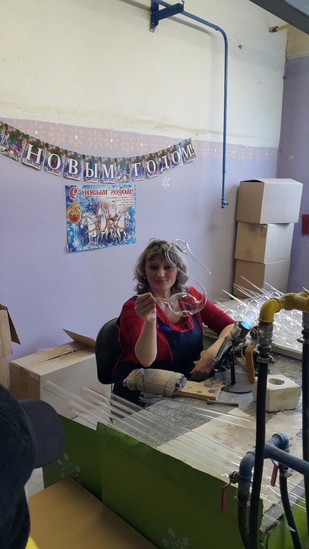 Все игрушки выдуваются из стеклянных колб,которые используются в медицине.