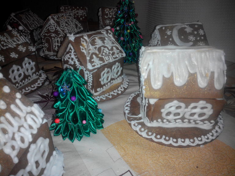 Вот и я решилась выставить свои домики. По сравнению с теми что здесь выставляют мои не взлетают,но на вкус они очень даже ничего. Делаю каждый год это у меня как традиция уже лет пять наверное. Мастер-класы не проходила самоучка, делаю для родных и близких подарки на Рождество.