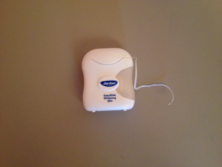 6. Примерно половина коробочки зубной нити (хотя по идее должно быть больше, но с виду половина). Нить - лента, при покупке это было неясно, но пользоваться такой не получается. Коробочка потертая, ибо долго лежала в надежде, что я научусь пользоваться ленточкой этой.