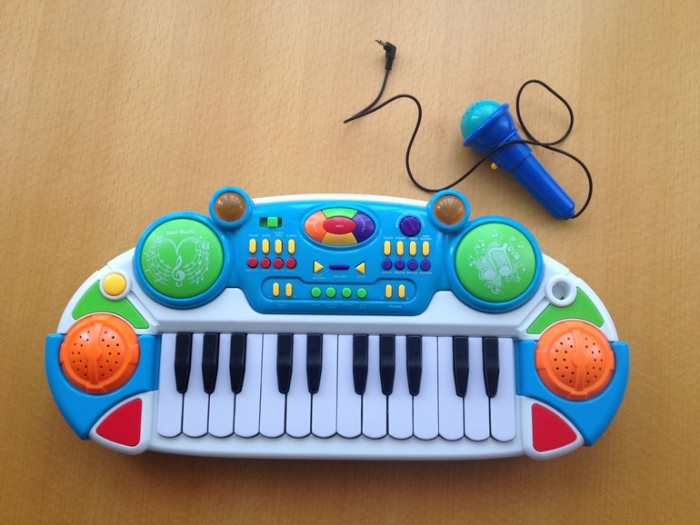 Играли мало. Работает от 4 пальчиковых батареек. Микрофон это конечно одно название, толку с него мало. Нюанс: потекла батарейка, я все почистила насколько было возможно (фото "разрушений" под катом). Проверила - полностью рабочий, но муж требует выкинуть, чтобы младшая дочка не облизывала его. Пока есть небольшой запах батарейки и жидкости для снятия лака, которой пыталась отмыть пластик. При наличии нескольких желающих сама выберу кому отдать. Письма в личку и комментарии типа "почему вы мне не отдали, Бог вам судья" не рассматриваю!