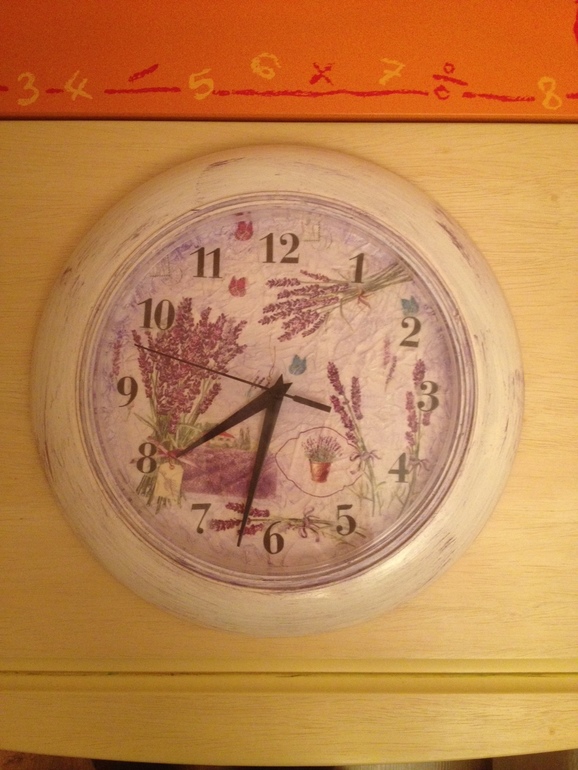Покупались на Ярмарке мастеров, мне кажется основа - часы из икеи. На батарейке. Работают, но требуют нежных мужских рук (у меня то ли стрелки погнулись, то ли их как-то надо закрепить). Иногда (раз в несколько месяцев) останавливаются, помогает то потрясти, то стрелки погнуть, то пошаманить с бубном. На фото желтоватые, но это из-за искусственного освещения. В жизни - белые с сиреневым.
