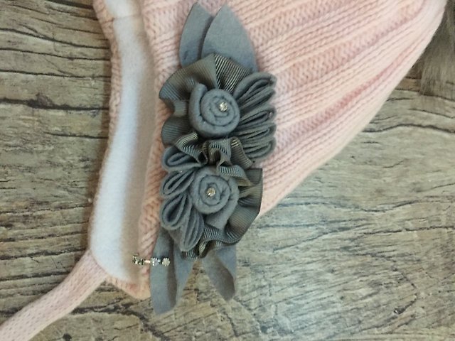 Шапочка, которая идеально подходит, шерсть меринос, подклад- полный флис, бубон песец, декорирована фетровым цветком ( ОГ 50-52)