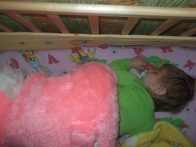 А если потом убрать? У нас тоже -только кот! А у старшей мишка,он побольше немного,но меньше вашего зайца -ттт,всегда с ним спит,ни разу не было такого,чтобы накрылась им.Вот такой мишка у старшей(тут она маленькая еще,Вам для сравнения размера):