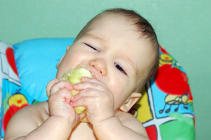 У нас ни одного зуба, но печеньки лопает влет! Даю целую печеньку в ручку, раньше давился, закашливался иногда, сейчас почти не бывает такого. Сушки раньше мусолил, но сейчас что-то их разлюбил. Может корочку или кусочек хлеба сам есть - аккуратно откусывает десенками. А на днях целое яблоко сожрал - дала попробовать почищенное от кожуры и не смогли потом отобрать, пока до огрызка не домусолил. Яблоко типа грушовки было (желтое такое), мягкое.Давайте пробовать ребенку, не будет пробовать - не научится