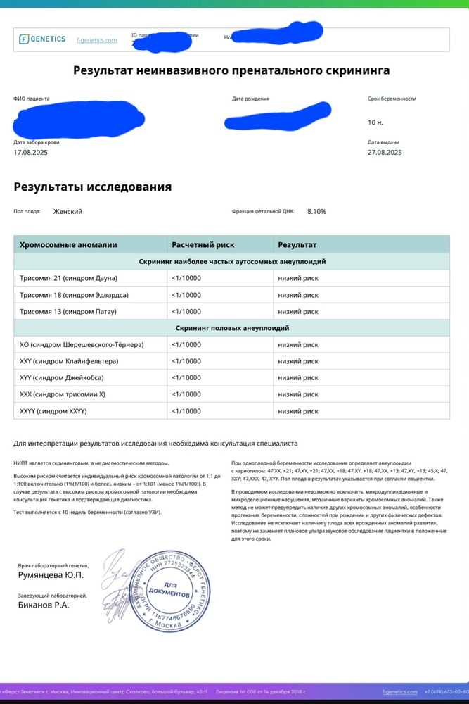 Трясущимися руками открывали нипт😀 все риски низкие.🥳 Моя единственная снежинка после ЭКО стала тем самым золотым эмбриончиком. Боже, я до сих пор не верю что это происходит со мной🙈