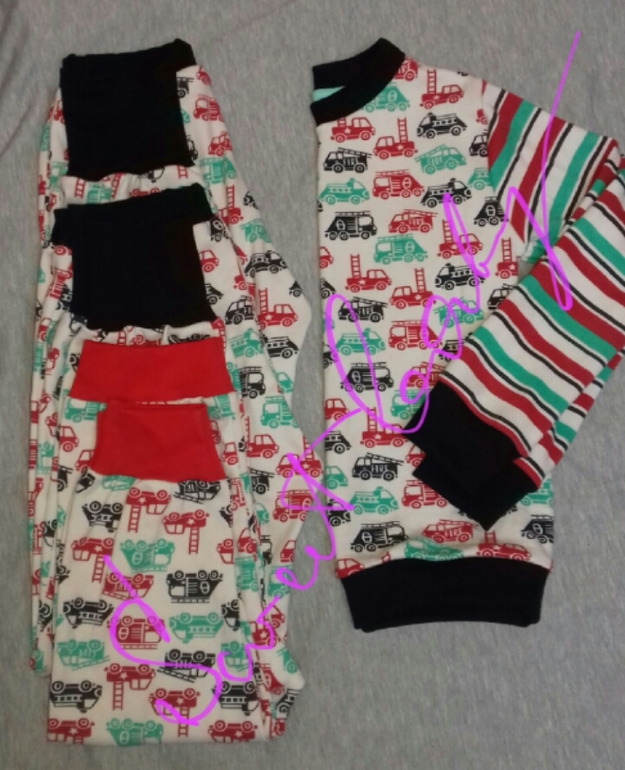 У меня от кроя остаются куски,которых на целый комплект не хватает, либо по цвету заказчику не угодишь )). Эти кусочки мне надо по любому утилизировать, так как занимают много места,а я часто забываю,что там есть. Там-это в пакетах). Поэтому я из них шью недорогие вещи детям, единственное условие-без выбора цвета. "А вот точно такие же,но с перламутровыми пуговицами"тут не прокатит. Цена дешевле в 2 -3 раза,чем если бы из целого полотна. Так что, не стесняйтесь, обращайтесь,если вам нужна домашняя одежка малышам. Примеры что из этого получается на фото ниже.