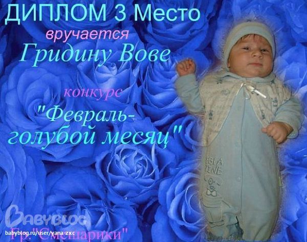 3-е место в конкурсе "Февраль-голубой месяц" в группе Смешарики на сайте Одноклассники.