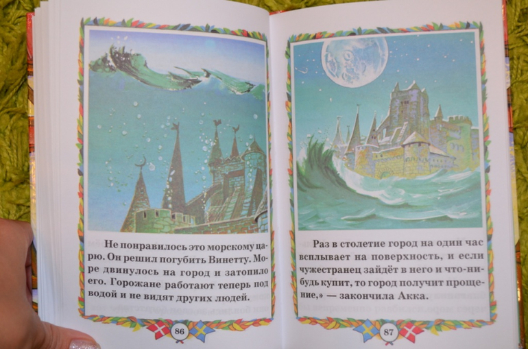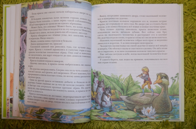 . Теперь по тексту. В обеих книгах текст не по мультфильму. Чем я была огорчена...Хотелось всё-таки одну из книг иметь с текстом по мультфильму. В этих книгах мальчик превращается обратно, произнося заклинание. А утенок Мартина и Марты становится маленьким. Дочке книги ещё не читала. Пока она у бабушки я сама прочитала обе книги. И вот итог: книга с полным текстом читается намного интереснее пересказа...поэтому теперь даже не знаю, читать ли дочке сокращенный вариант или оставить эту книгу для самостоятельного чтения. В сокращенном варианте маловато диалогов, больше описания действий. И в ней нет истории про Бронзового и Деревянного и про Удачника и Неудачника. Остальное вроде бы есть, но всё галопом по Европам)). Немного разворотов: