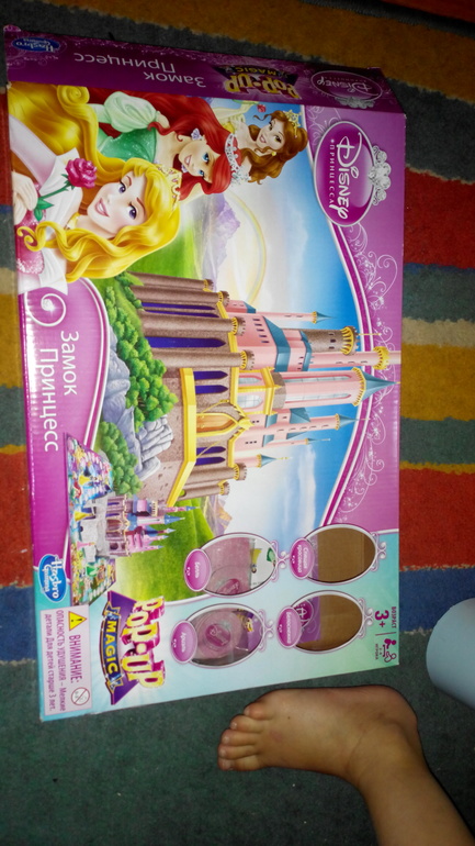 Хотели мы купить Полине лего рапунцель,так как она без ума от этой скпзки,но прийдя в магазин поняла что дочь набор не впечатлил.Потому долго бродили по детскому миру в поисках интересного.В итоге купили такую вот игру настольную с диснеевскими принцессами-фишками. На коробке написано 3+,но если ребёнок усидчив и 2+ подойдет.Суть игры в том чтобы дойти первым до замка.Максимум 4 участника.Каждый крутит вертушку и выбирает цыфру -количество ходов.Ещё по ходу игры нужно собирать фишки с изображением друзей каждой принцессы.Фишки лежат обратной стороной,потому ребёнок тренирует память. Кроме игры по правилам П ещё играла сама,придумывая как принцессы спасаются от воображаемой колдуньи или танцуютина балу.В общем отличная игра для детей " не любителей" игрушек.