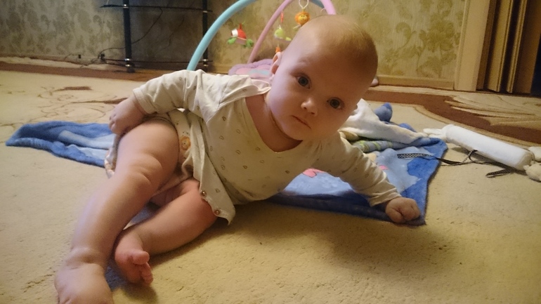Умелки: все те же:сидит хорошо,спинку ровно держит, встаёт горизонтально с опоры, ползает быстро на коленочках, начинает говорить, но пока это попытки, чётко слово не произносит..."да;мам"..