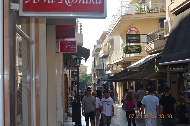 Жизнь здесь течет своим чередом, сервис не навязчив, но на уровне, греки очень приветливые и вежливые люди. В лавках и магазинах можно купить всё - да, да «в Греции все есть»))). Много разнообразной косметики с оливковым маслом. Помимо знаменитых греческих шуб, сумки ручной работы и другие аксессуары из кожи. Привезли с собой экстра легкое оливковое масло на пробу, т.к. на одной из экскурсии гид убеждала в том, что она на порядок лучше итальянского, и якобы итальянцы покупают греческое масло, разбавляют его своим и продают. Много всевозможных оливок - с начинкой и без, в заливках и специях, греческие сладости, губки-мочалки из натурального материала, национальный алкоголь (Узо, Метакса), натуральное оливковое мыло, украшения из серебра высокого качества.