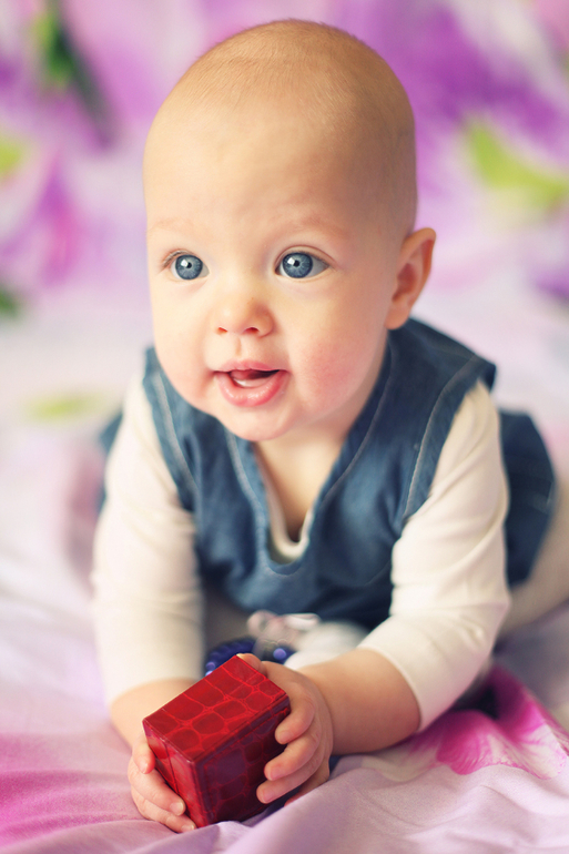 Позавчера стукнуло 6 месяцев и, видать в честь этого, сразу начала поднимать попу и пытаться ползти.))