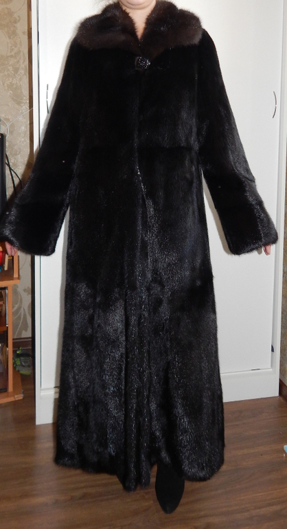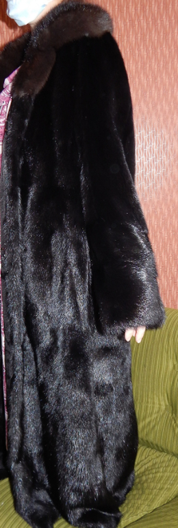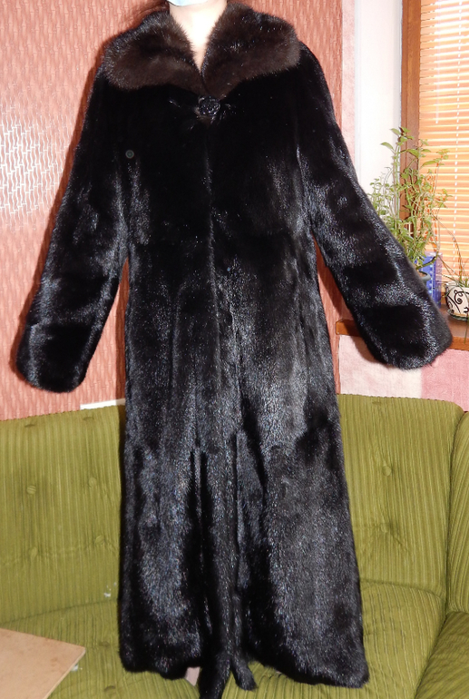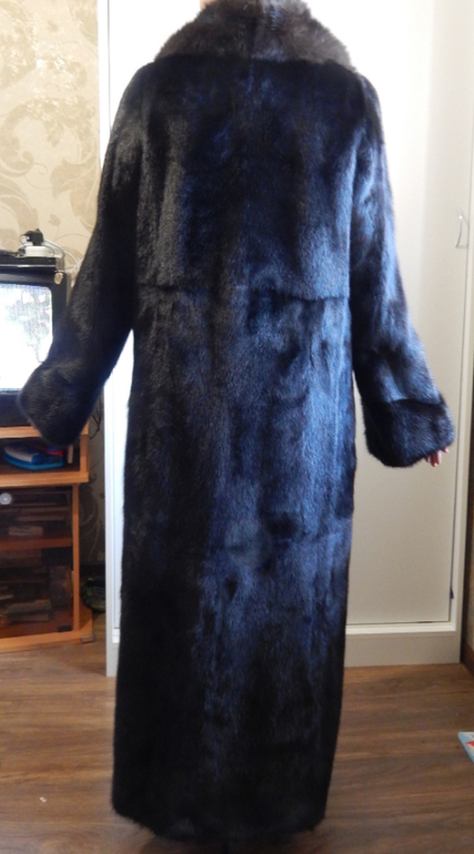 Мех сага фурс, длинный густой блестящий. Цвет черный, воротник соболь, расклешенная трапеция, ширина подола 150см. на поясе и рукавах есть кулиска (затягиваются, на первом фото видно), подол не подшит ,качество отменное, заказывалась на фабрике (где закупается СК), экземпляр единичный.