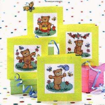 В сборнике иллюстрации и схемы по вышивке мишек Тедди в разных ситуациях