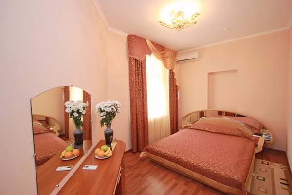 Апартаменты:Апартаменты являются самыми роскошными из всех предлагаемых номеров, обладают площадью 80 кв. метров и отлично оснащены удобствами Во всех номерах есть интернет, установлен полноценный набор бытовой техники и удобная качественная мебель, санузел оснащен туалетом и душем. Все категории номеров, кроме Апартаментов, имеют выход на балкон.