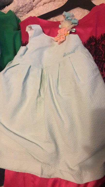 Платье нарядное на рост 12/24 мес. Состояние хорошее. Цвет: нежно зелёный, украшенном цветами на лямки. Экв.1000.