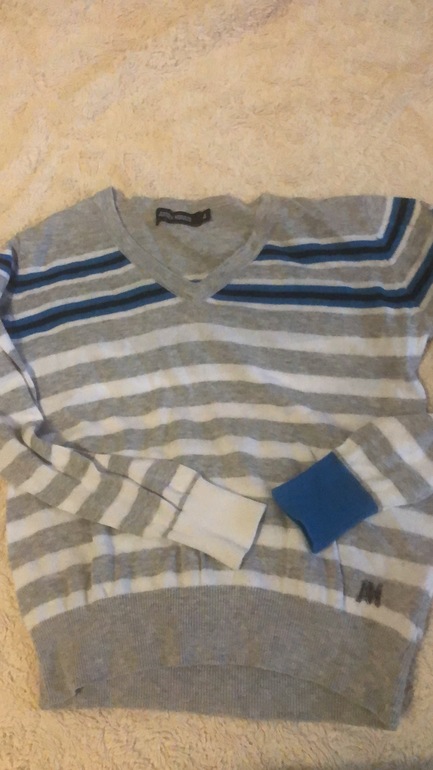Свитер очень тонкий и тёплый. Состояние хорошее (есть пятнышко на рукаве, думаю можно отстирать). Размер 4/5 лет. Экв.500