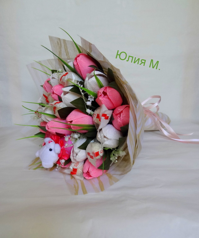 Тюльпаны. Идею букета взяла у мастера с другого сайта Даши Хомюк.