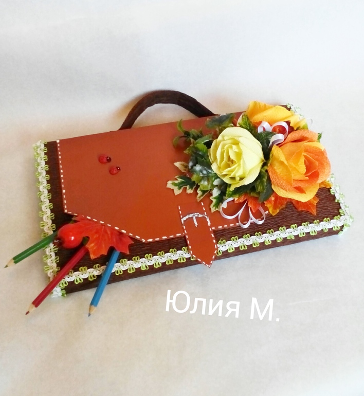 И ещё сюрприз для моей любимой подруги и Кумы, купила ей чемоданчик для косметики, а вовнутрь сделала букетик-комплимент, чтоб пустой чемодан не дарить)))