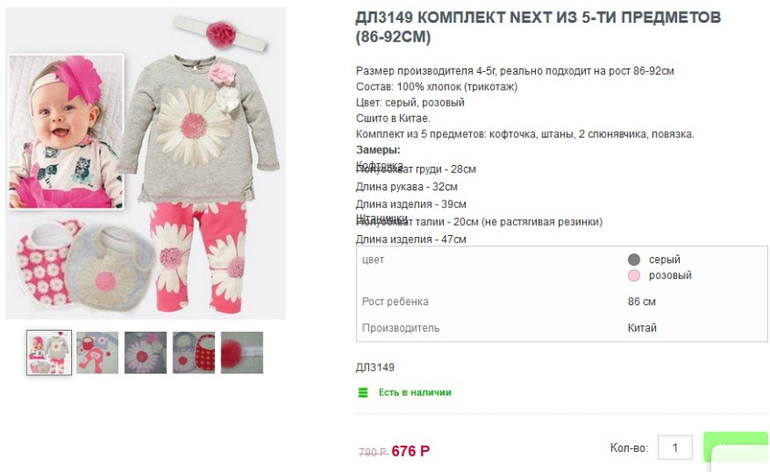 12. ДЛ3149 Комплект NEXT из 5-ти предметов (80см, 86см). Цена 676 рублей