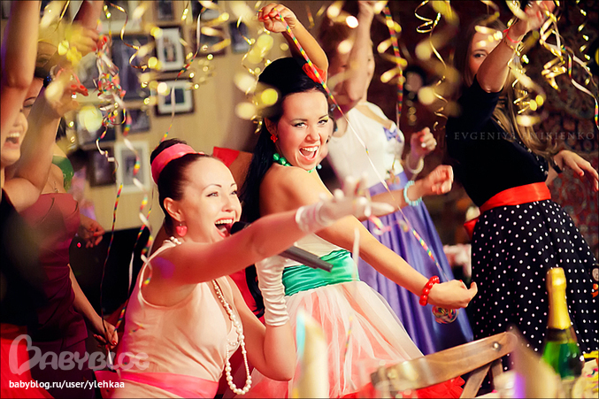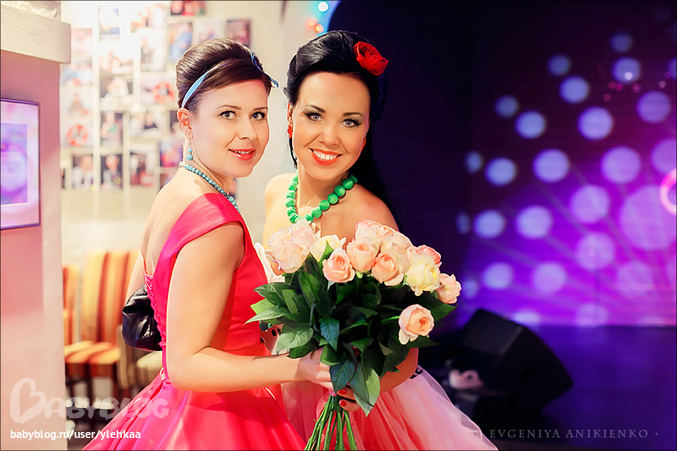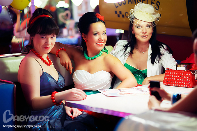 Привееет мои девчушки-дорогушки, ну наконец то я могу показать вам свой праздник, и так вашему вниманию представляется мой 30-летний юбилей, который я решила отмечать не обычными посиделками в кафешке, о котором забудут все на следующий день, а решила отметить его ярко и запоминающи для всех. Конечно сам стиль стиляг, где обилие красок уже задаёт своё настроение, и нам всем было настолько круто окунуться в атмосферу тех времён, стиль, наряды, ресторан, атмосфера всё соответствовало нашему стиляжному мероприятию. ДР решили отмечать девишником, и это было очень правильное решение, тк все мы девочки уже погрязли в домашнем быту, в детях, мужьях и.т.д, и порой так хочется от всего и всех отдохнуть, а отмечая без наших любимых мужчин, мы оторвались на славу, были пляски, танцы, море веселья, мы все как будто вспомнили детство, мы все так дурачились, 30ти летние дамы радовались воздушным шарикам как дети, в общем нам всем было так круто что не передать словами, с мужчинами мы бы себе этого не позволили. Девчули мои все красотки не подвели, подошли ответственно к своим образам, ну и что получилось судить вам, словами передать не могу, по фото всё поймёте как нам было хорошо .....