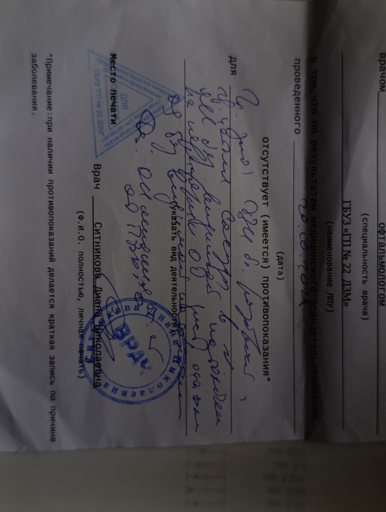 Особенно с такой формулировкой «отсутствует (имеется) противопоказания». Конечно я прочла сноску и всё равно не понимаю. Надеюсь завтра мне это прояснят.