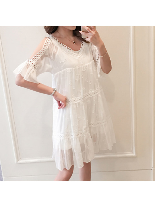 Красивое летнее кружевное платье. Длина 78.0 см по спинке, ширина под грудью 50.0 см. К сожалению, не подошёл размер и на мой рост коротковато.