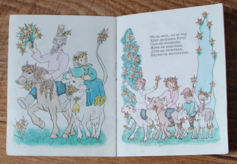 Затем у нас появилось несколько новых книг с потешками и мои старые книжки-малышки из детства, но "Яблочки-пятки" у меня самые любимые. Одна моя книжка настолько "залюблена" мною в детстве, что мне стыдно её показывать.