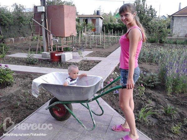 Вот тебе и лето! Солнышко светит, а на улицу ни ногой! Даже под утро опускается только до 26.... Переехали на дачу, там он хоть в бассейне плюается и голый бегает)) Загорееел))) Ещё лопает клубнику сколько захочет, заодно периодически заедает земелькой))) Всё бы ничего, но спать неудобно, ненавижу я всё-таки совместный сон... А ещё я его катаю в садовой тачке - вот он верещит)))))))))))))))))