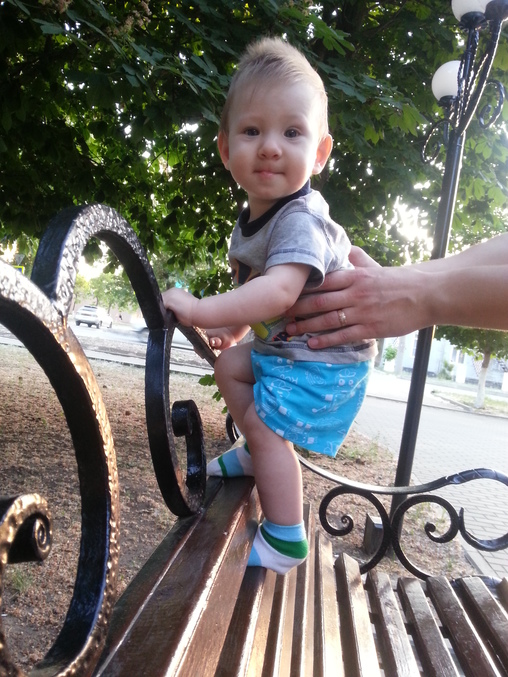 Стараемся гулять в парках, аллейках...где красивые цветы и глаз радуется)))) Андрюшка - будущий скалолаз, покоряет вершины...лезет на спинки лавочек (при чём сам, но со страховкой))))...Дома покоряет спинки диванов, кресел....и самое главное у него это получается!!!! хотя "няньки" от этого страдают